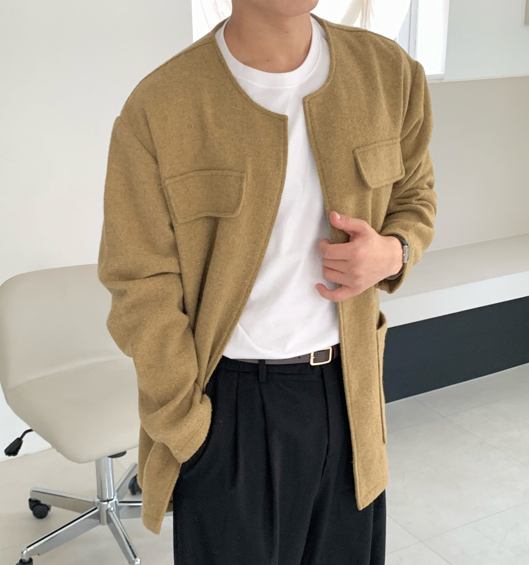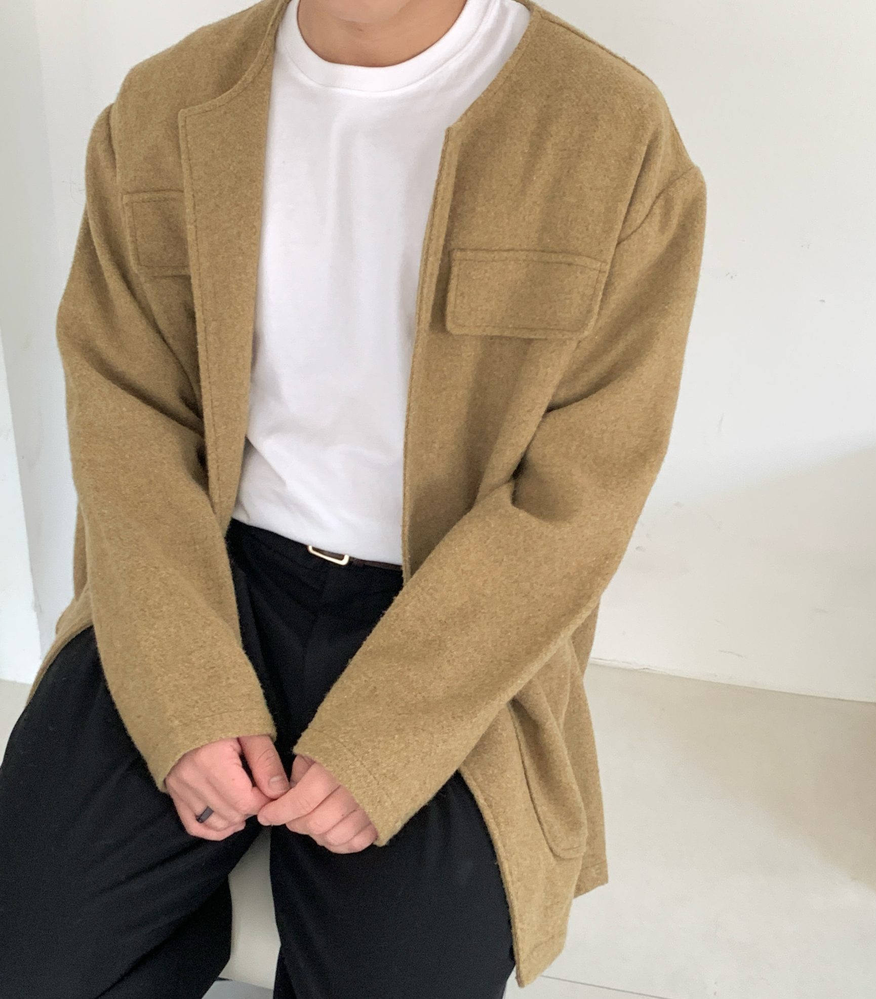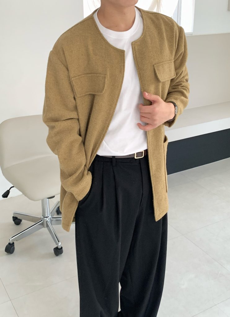 | フィット (핏): | セミオーバーフィット、ノーカラーデザイン |