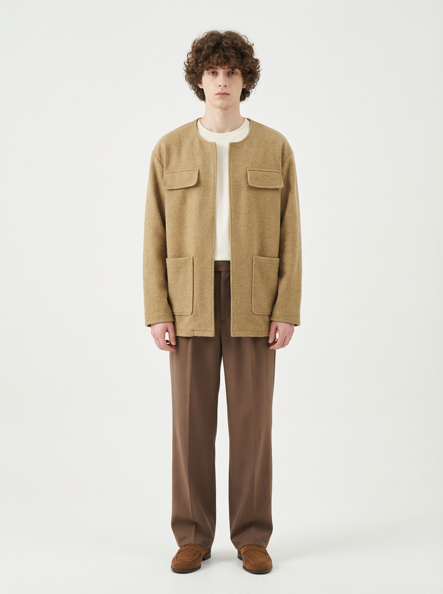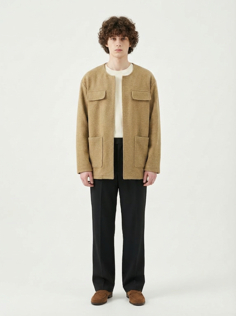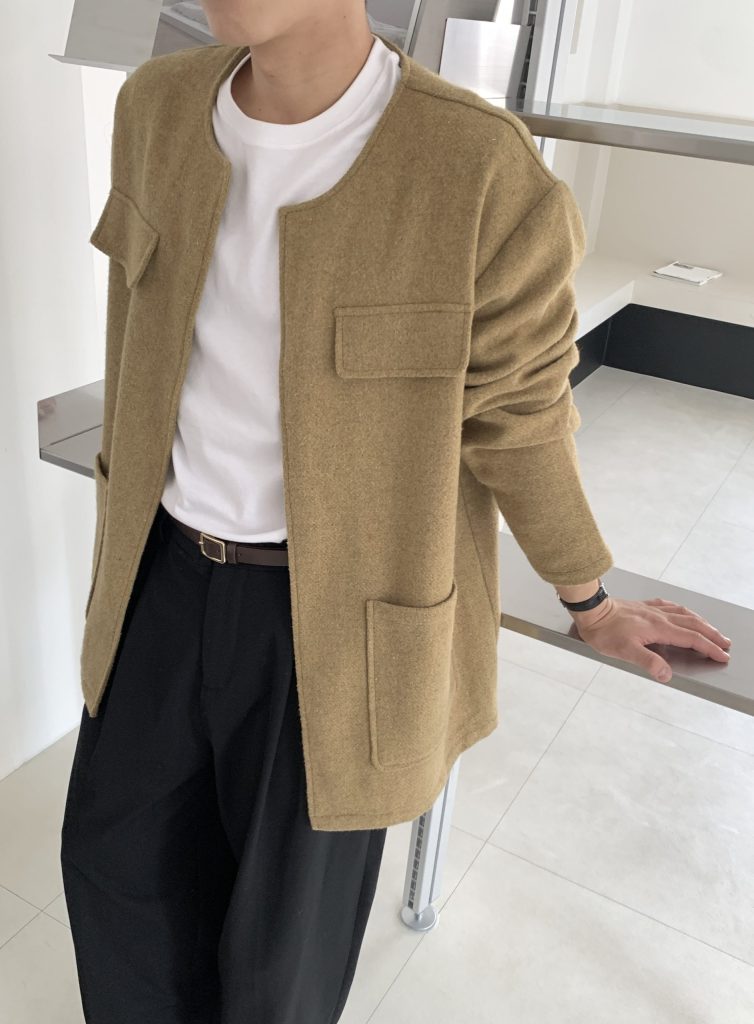 ノーカラーウールブレザーです。